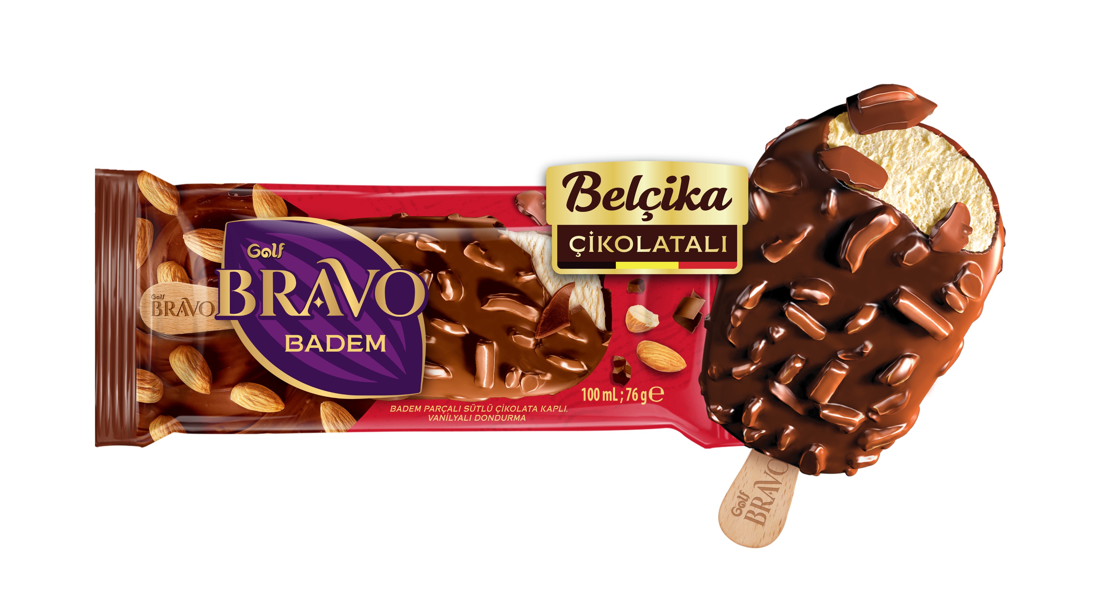 Özenle seçilen bademlerin Belçika çikolatası ile buluştuğu Golf Bravo Badem, klasik lezzetlerden vazgeçemeyenlerin favorisi olarak öne çıkıyor. Ipsos tarafından gerçekleştirilen araştırmaya göre; araştırmaya katılan her 10 kişiden 9’unun denedikten sonra tadını beğendiği Belçika çikolatalı Golf Bravo Badem; her lokmasında çikolata dokusu ve bademin eşsiz lezzetiyle unutulmaz bir tat bırakırken aynı zamanda yüksek kaliteli hammaddelerin de mükemmel dengesini sunuyor.